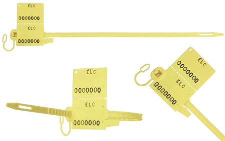 Sellos en una sola pieza y ajustable para distintos tamaños de saco. El sello standard viene con lazo portaetiqueta, la punta rayada de la lámina para fácil remoción, y acompañado de una herramienta para la apretadura deseada. Recibo numerado y nylon como materia prima, son elementos opcionales. Personalización y codificación disponibles en hot-stamp o IML.