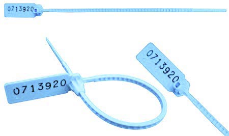 Comprimento ajustável ao aperto desejado. Codificação e personalização em "hot stamp". Fornecidos em cartelas com 10 lacres interligados. Resistência à tração 25MPa.