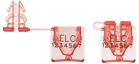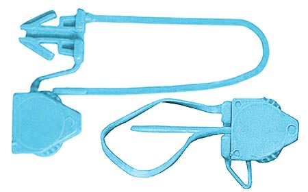 b) Lacres em policarbonato: amarelo, azul, vermelho, verde, fumê, marrom e incolor (YL, BL, RD, GR, FM, BR e CL)