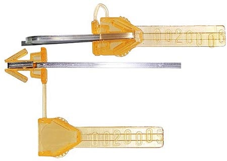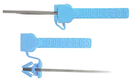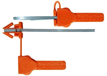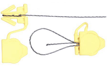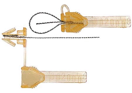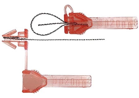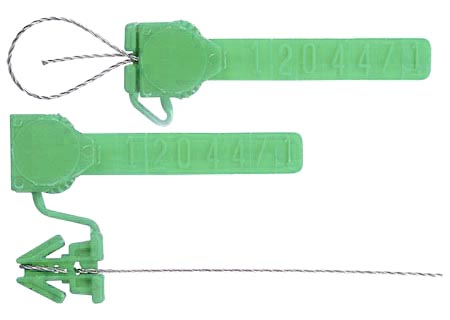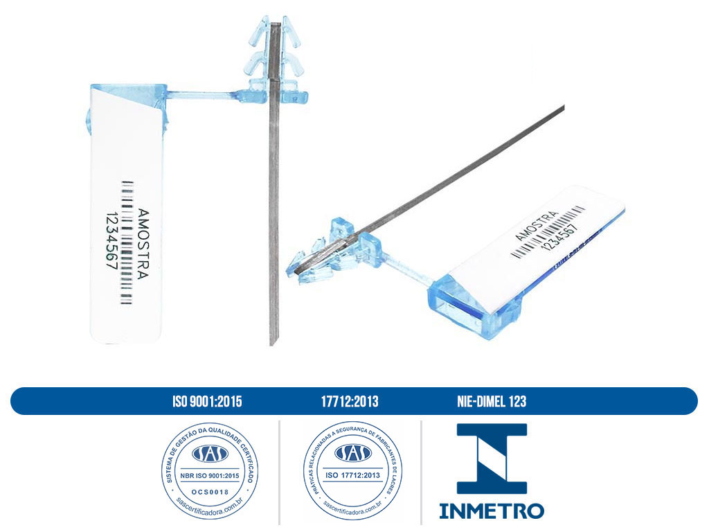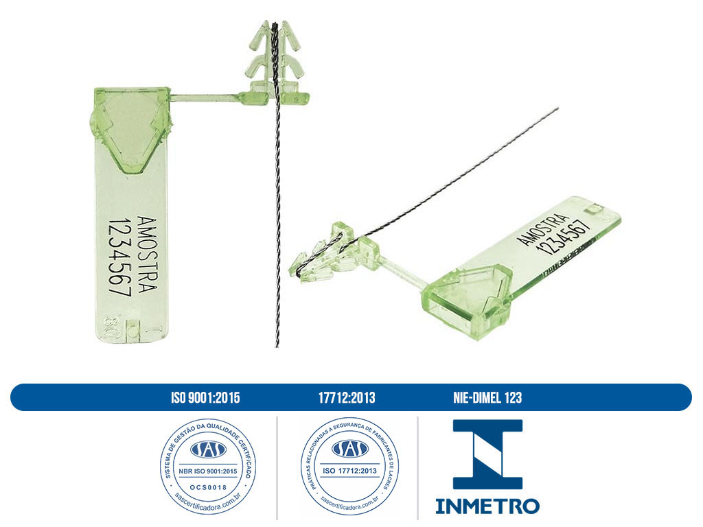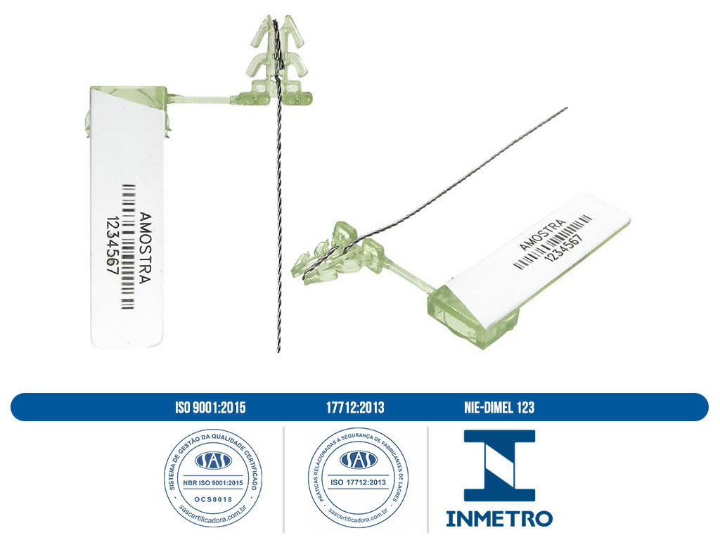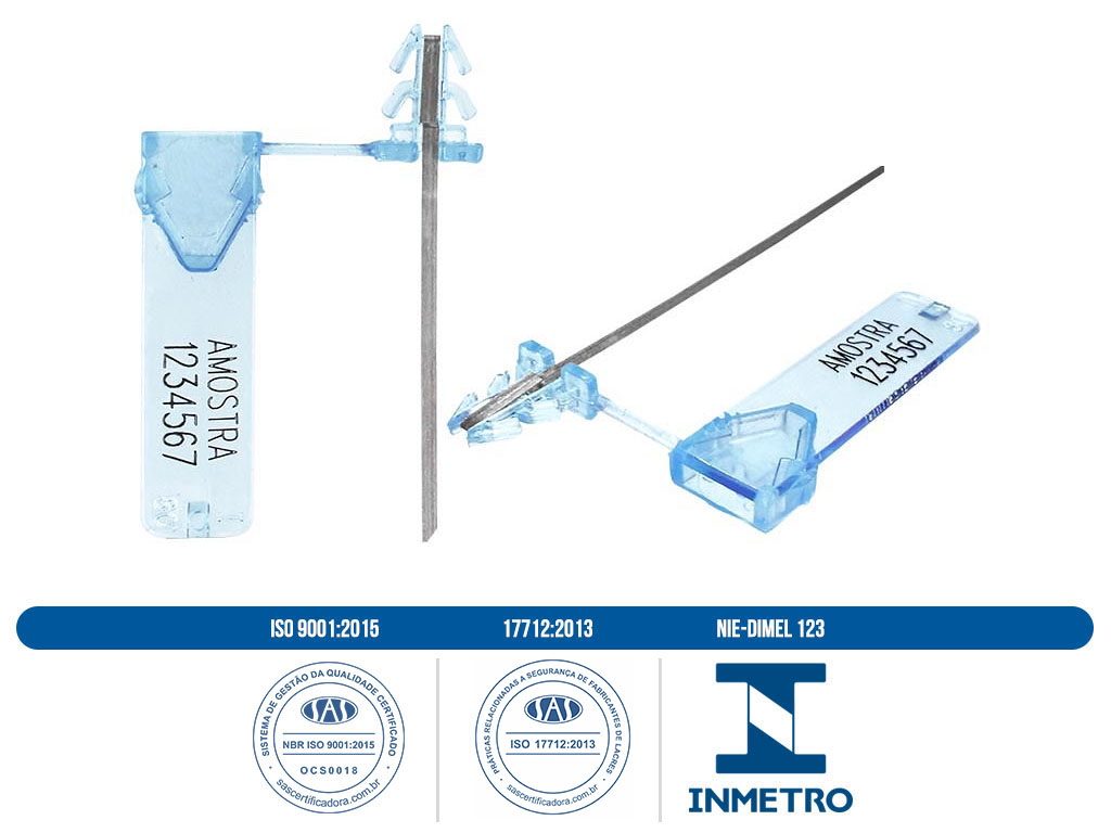 Compostos de cápsula, âncora, numeração em alto relevo e opções de arames, fitas e fios plásticos de selagem.