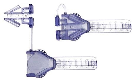 b) Lacres em policarbonato: amarelo, azul, vermelho e incolor (YL, BL, RD e CL)