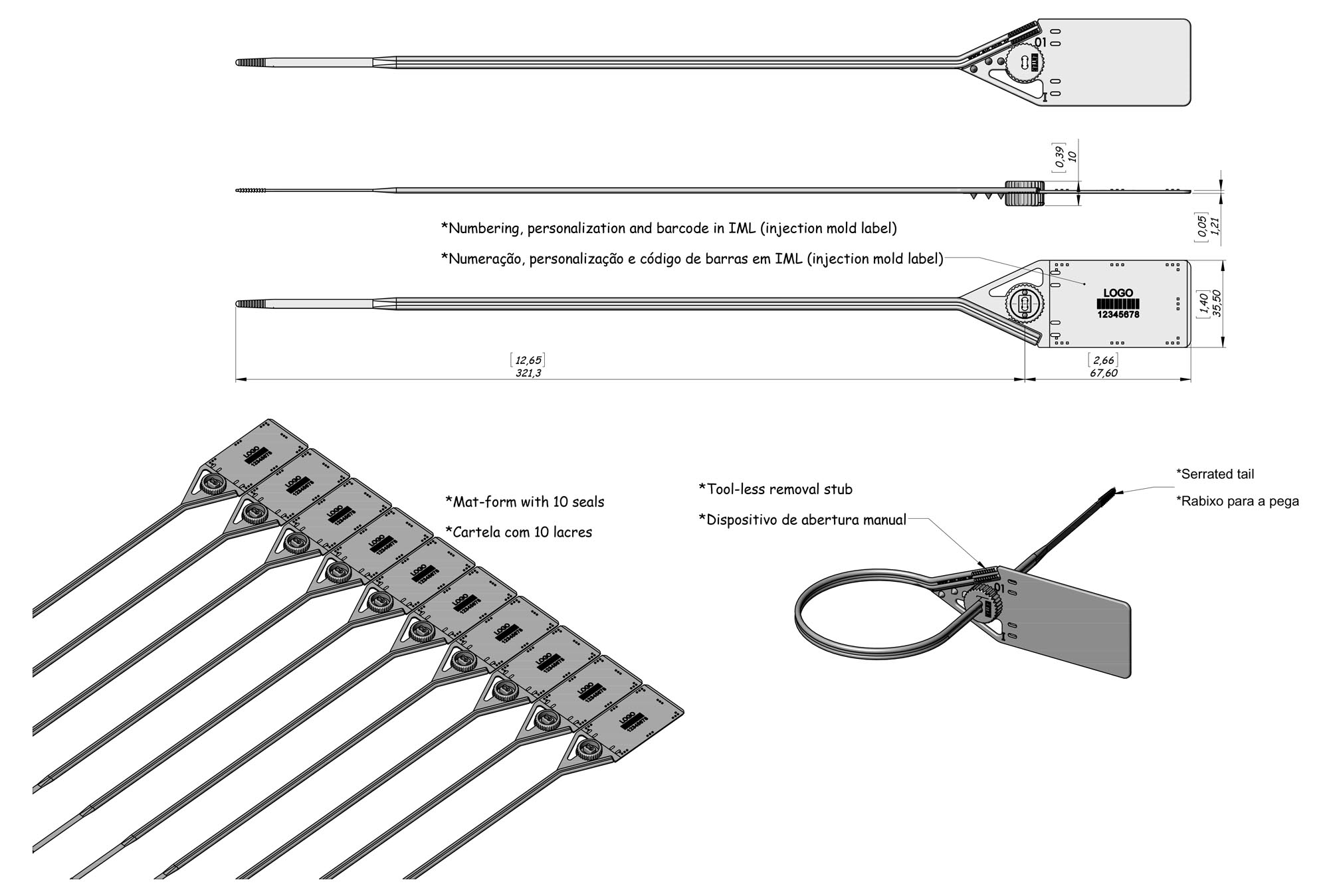 Por se tratar de um processo de segurança, recomendamos o lacre Clipinlock para fechamento dos sacos com furos, pois o mesmo dispõe de um clip metálico interno que garante um fechamento de alta segurança, impossibilitando que o rabicho seja manipulado (aberto) após a lacração.