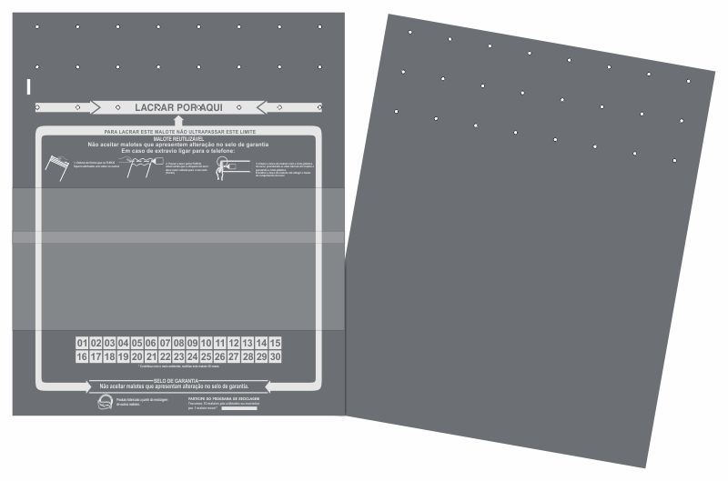 Envelope saco com furos reutilizável co-extrusado em polipropileno na cor cinza opaco, com 300 microns de espessura (150 por parede), com sistema de fechamento a base de lacre de segurança, que proporciona maior controle e segurança.